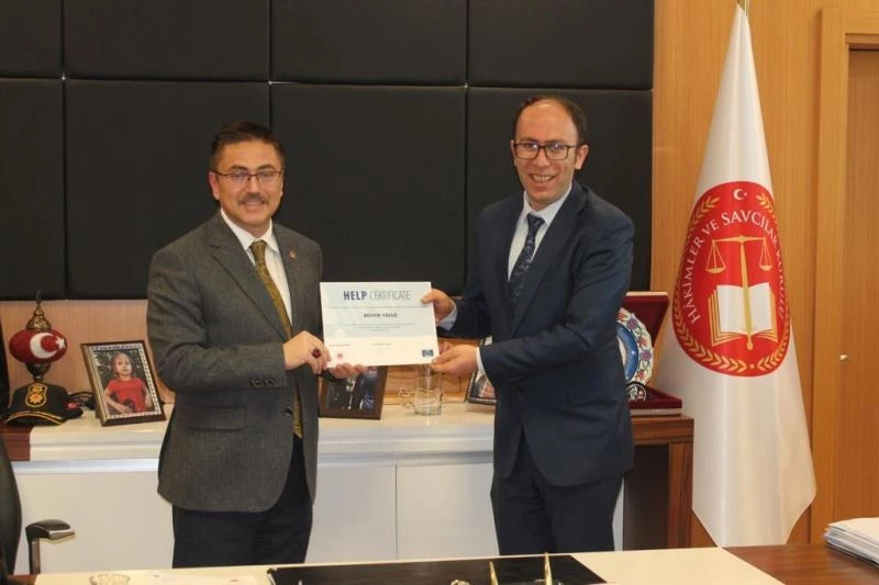 Avrupa Konseyinin uzaktan eğitim programı olan HELP (Hukuk Profesyonelleri İçin İnsan Hakları Eğitimi - Human Rights Education for Legal Professionals) e-Eğitim platformunun kullanımının Türkiye’de yaygınlaştırılması amacıyla düzenlenen "Avrupa İnsan Hakları Sözleşmesine/Mahkemesine Giriş Uzaktan Eğitim Modülü"nü başarıyla tamamlayan Van Adli Destek ve Mağdur Hizmetleri Müdürlüğünde görevli Psikolog Bekkir Yavuz, Sosyal Çalışmacı Muhammed Asım Sağlam ve Psikolog Vetfa Acer’e sertifikaları Van Cumhuriyet Başsavcısı Oğuzhan Dönmez ile Van Cumhuriyet Başsavcı Vekilleri Hikmet Salman ve Lütfü Boyalı tarafından teslim edildi.