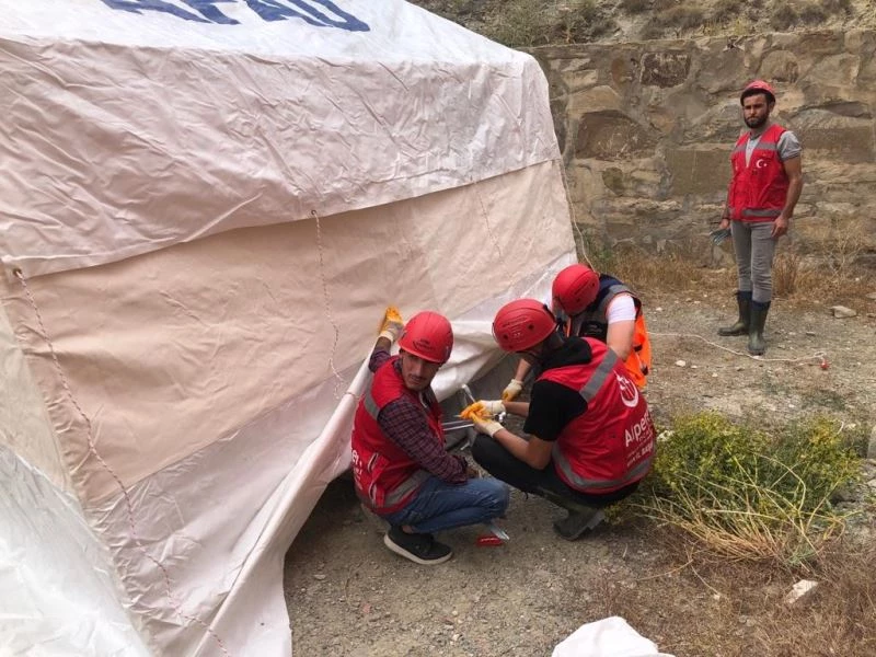 Van Alperen Ocakları Arama ve Kurtarma Ekibi, Başkale ilçesinde meydana gelen sel felaketinde mağdur olan afetzedeler için hazırlanan çadır kurma çalışmalarına katıldı.