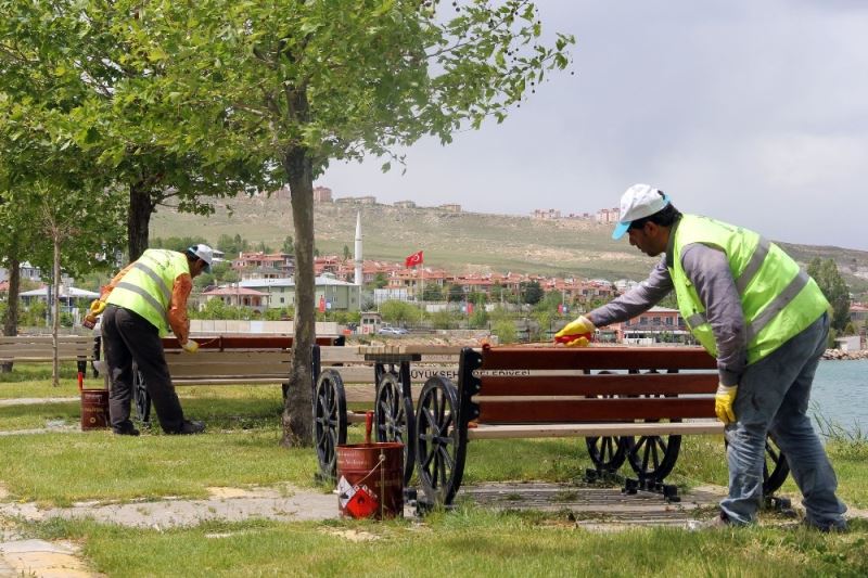 Van Büyükşehir Belediyesi, küresel salgın korona virüsten dolayı yaklaşık 3 aydır kapalı olan park ve bahçelerdeki çalışmalarına aralıksız devam ediyor. Havaların ısınması ve kontrollü sosyal hayata geçiş kapsamında çalışmalarına hız veren Park ve Bahçeler Dairesi Başkanlığına bağlı ekipler; bahçe, kavşak ve refüjlerde onarım çalışması yaparak oyun alanlarının kauçuk zemin döşemelerini değiştiriyor. Yıpranmış olan bank ve kamelyalar boyanırken, süs havuzlarının da bakımı yapılarak tazyikli su ile yıkanıp yosunlardan arındırılıyor. Bahar mevsimiyle birlikte Van genelindeki 19 parkta yaklaşık olarak 500 bin metrekarelik yeşil alanda da çim biçme çalışması yapıldı.