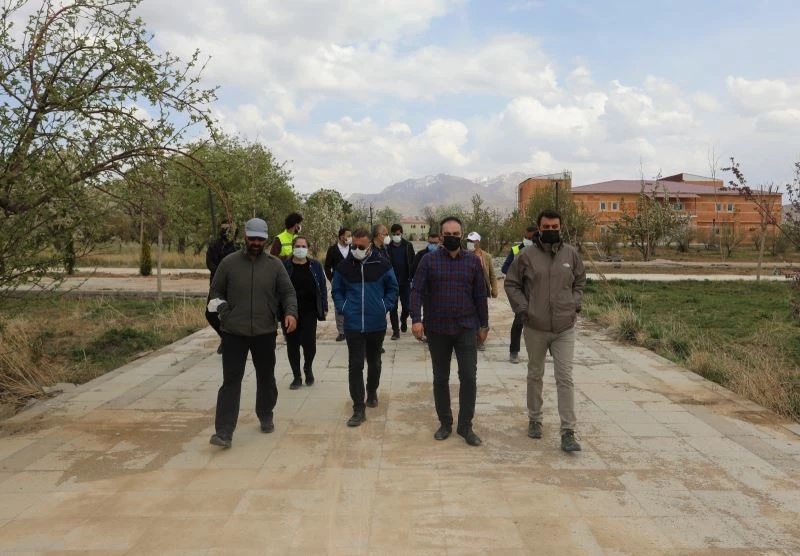 Genel sekreter yardımcıları ve daire başkanları yapımında sona gelinen ve bittiğinde Van’ın en büyük yeşil alanı olacak Edremit ilçesi Eminpaşa Mahallesi’nde bulunan Fidanlık Parkına gitti. Alanın tamamını gezen genel sekreter yardımcıları ve daire başkanları çalışanlardan bilgi alarak yapılan işleri inceledi.
