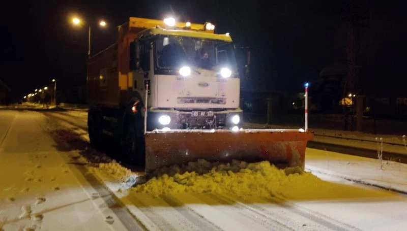 Van’da kar yağışı ve tipi nedeniyle Büyükşehir Belediyesi karla mücadele ekipleri 7/24 çalışıyor. Kent merkezinde gece boyu küreme-tuzlama çalışması yapılırken, kırsalda ise hasta kurtarma, yola düşen çığların temizlenmesi ve kapalı yolların açılması için yoğun bir çalışma yürütüldü.