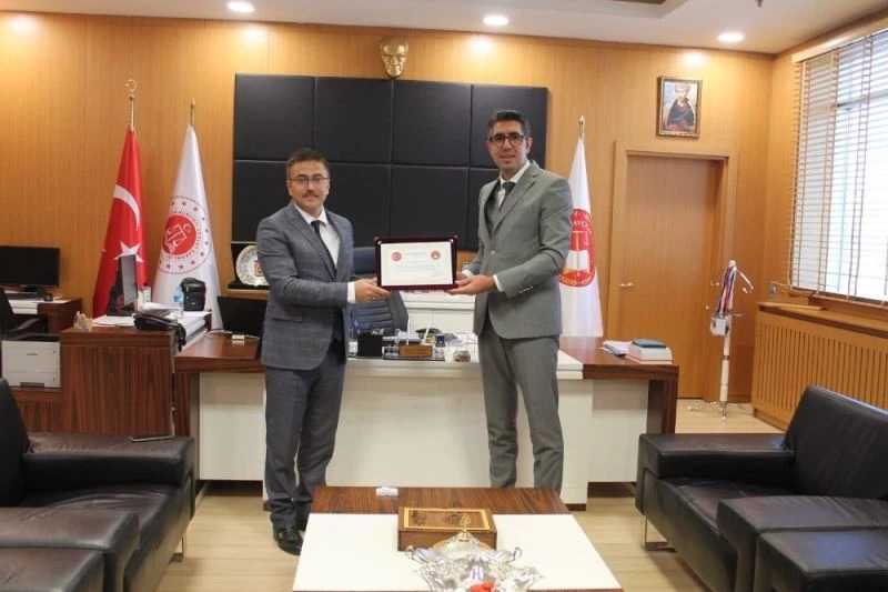 Van Cumhuriyet Başsavcısı Oğuzhan Dönmez, Hakimler ve Savcılar Kurulu 2. Dairesince birinci sınıfa ayrılmasına karar verilen Başsavcı Vekili Lütfü Boyalı’ya plaket takdim etti.