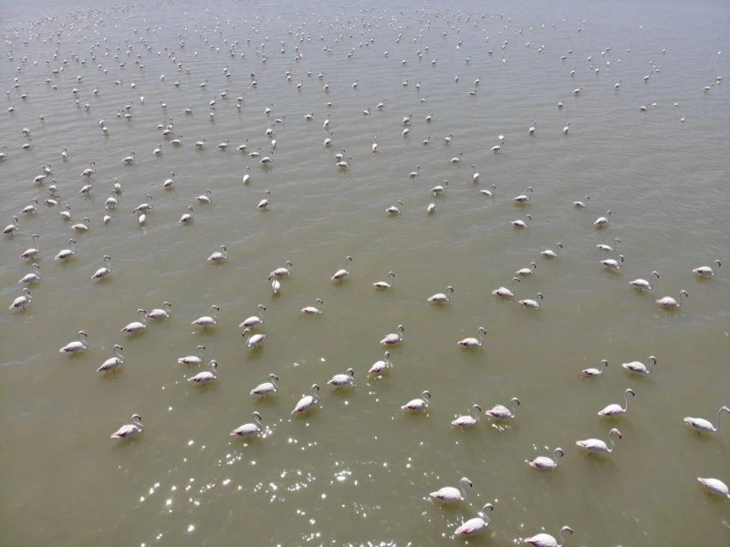 Yüzlerce kuş türüne ev sahipliği yapan Van Gölü Havzası’nda yaz mevsimi boyunca konaklayan flamingoların doğal yaşamı, doğaseverlerin yanı sıra fotoğraf tutkunları tarafından da ilgiyle izleniyor. Göçmen kuşların Kuzey Afrika’dan İran’a uzanan yolculuğunda en önemli konaklama merkezlerinden Van Gölü havzası, bu yıl da binlerce flamingoya ev sahipliği yapıyor. Havaların ısınmasıyla konaklamak için kentteki sulak alanlara akın eden binlerce flamingo, tasarımlarına ilişkin dikkat çekici iri gövdeleri, zarif boyunları ve uzun bacaklarıyla ziyaretçilerini bekliyor. Kasım ayı sonuna kadar Van Gölü sahillerinde konaklayan flamingolar, kışın etkisini göstermesiyle sıcak bölgelere göç ediyor.