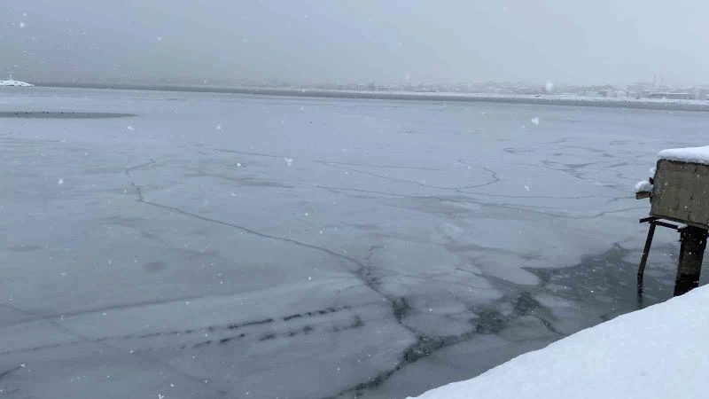 Yağan kar ve soğuk hava, doğuda hayatı olumsuz etkilerken, Türkiye’nin en büyük sodalı gölü olan Van Gölü’nün Tatvan kıyıları dondu. Tatvan ilçe merkezine yakın sahil bandının buzla kaplanması, balıkçıları da şaşkına çevirdi. Sabahın erken saatlerinde göle attıkları ağları toplamaya giden balıkçılar, Van Gölü’nün donmasını cep telefonlarına kaydettiler.