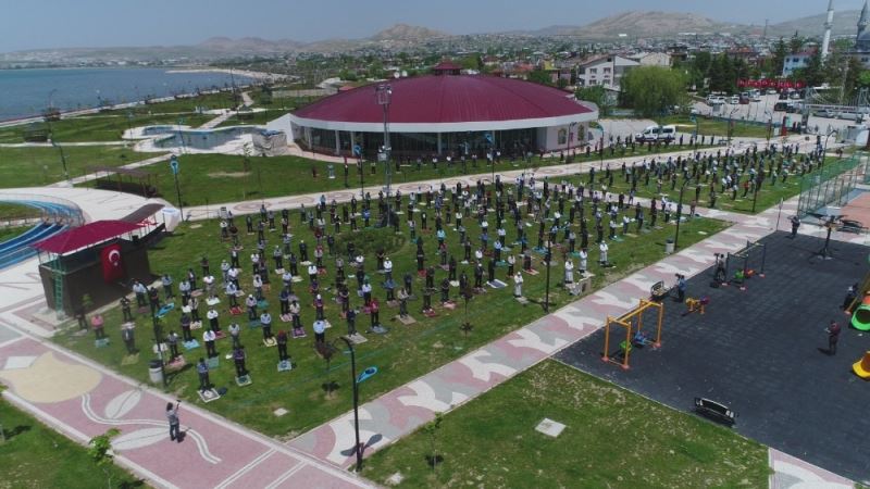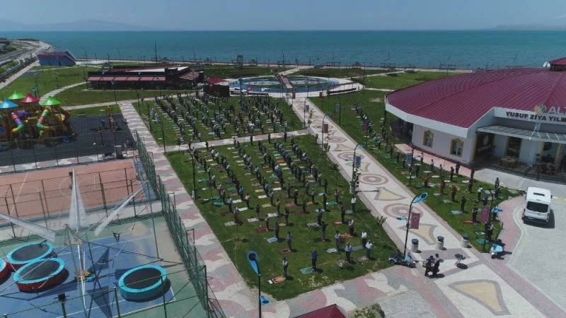 Van Gölü sahilindeki 15 Temmuz Şehitler Parkı’nda korona virüs tedbirleri kapsamında cemaat saf tutarak aylar sonra cuma namazı kıldı.