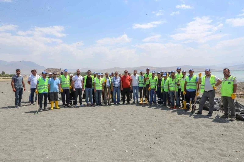 Van’ın İpekyolu Belediyesi ekiplerince Van Gölü sahilinde yürütülen temizlik çalışmasında tonlarca çöp toplandı.