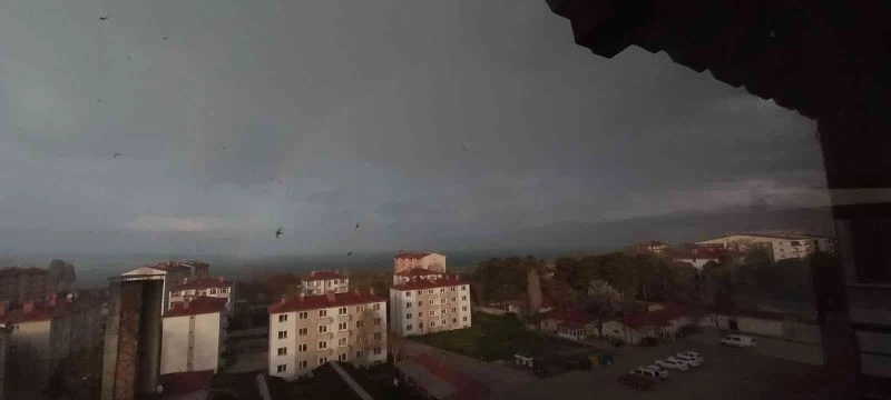 Bitlis’in Tatvan ilçesinde aniden bastıran sağanak yağış sonrasında Van Gölü üzerinde gökkuşağı oluştu.
