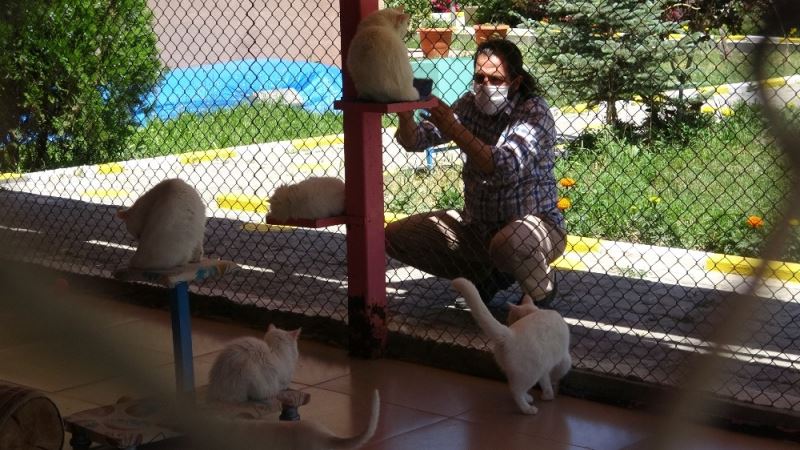 Her yıl yerli ve yabancı on binlerce kişinin uğradığı Van Kedi Villasında koruma altındaki kedilerin korona virüsü tedbirleri kapsamında insanlarla teması kesilirken, ziyaretçiler kedileri uzaktan sevmek zorunda kalıyor.