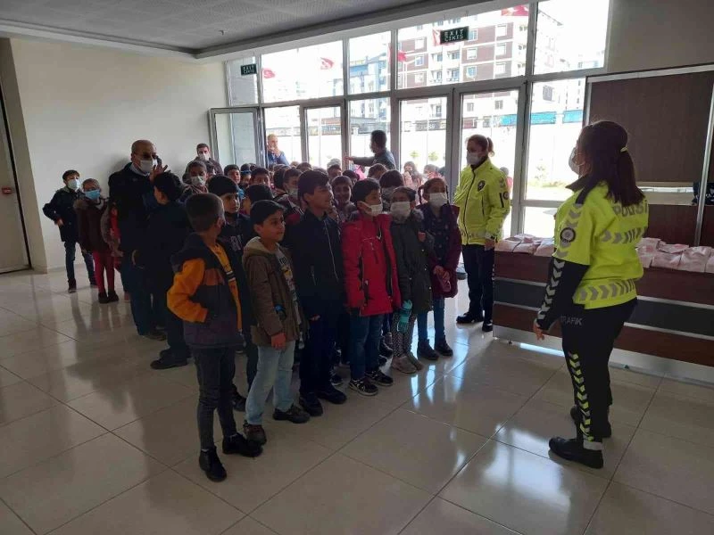 Trafik Denetleme Şube Müdürlüğü görevlileri, İpekyolu ilçesi Fatih Sultan Mehmet İlkokulunda okuyan 120 öğrenciyi İl Emniyet