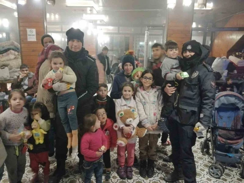 Van Emniyet Müdürlüğü görevlileri, Kahramanmaraş merkezli depremlerden etkilenen Malatya’da çocuklar için etkinlik düzenleyerek oyuncak dağıtımı yaptı.