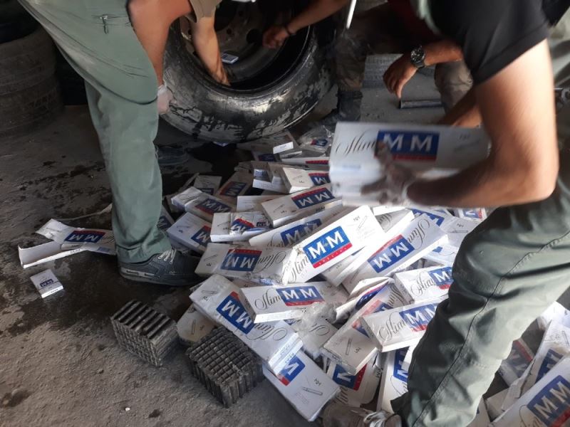 Van Emniyet Müdürlüğü Narkotik Suçlarla Mücadele ile Kaçakçılık ve Organize Suçlarla Mücadele Şube müdürlüğü ekipleri, il merkezinde ve ilçelerinde haksız kazanç sağlamak amacıyla gümrük kaçağı ticareti yapan ve nakleden şahıs/şahısların deşifresine yönelik olarak çalışmalarını aralıksız sürdürüyor. Bu çalışmalar kapsamında Narkotik Suçlarla Mücadele ile Kaçakçılık ve Organize Suçlarla Mücadele Şube müdürlüğü ekipleri, Edremit ilçesi Kurubaş Mahallesi’nde oluşturdukları uygulama noktasında durumundan şüphelenilerek durdurulan bir kamyonda arama yapıldı. Yapılan aramada kamyonun 4 adet lastik içerisine ve kapalı kasanın yan duvarları ile üst tavanına özel olarak halatlarla sarmal olarak zulalanmış toplam 13 bin 800 paket üzerinde TAPDK bandrolü bulunmayan kaçak sigara ele geçirildi. Olayla ilgili gözaltına alınan araç sürücüsü S.T., “5607 Sayılı Kanun’a Muhalefet Etmek” suçundan çıkarıldığı adli makamlarca tutuklandı.