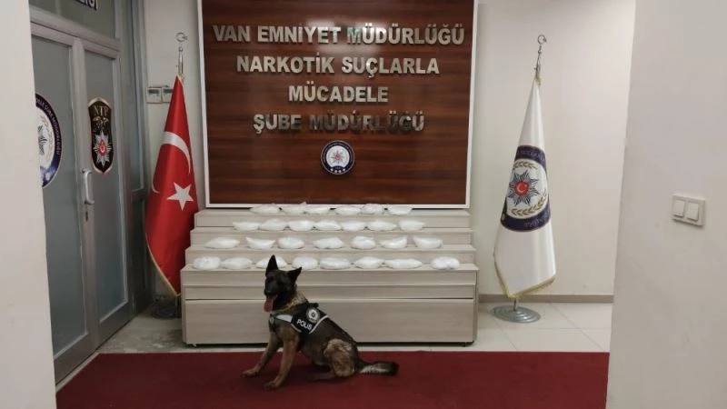 Van’ın Edremit ilçesinde ‘Bozo’ isimli köpeğin de katıldığı aramada 14 kilo 60 gram metamfetamin ele geçirildi.