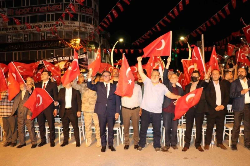 15 Temmuz Demokrasi ve Milli Birlik Günü nedeniyle bir araya gelen yüzlerce vatandaş, İl Emniyet Müdürlüğü önünden Beşyol Meydanı’na kadar yürüdü. Burada saygı duruşu ve İstiklal Marşı ile başlayan program, Kur’an-ı Kerim tilaveti ve dua ile devam etti. Şiirlerin okunduğu gecede konuşan Van Valisi ve Büyükşehir Belediye Başkan Vekili Ozan Balcı, Türkiye’nin ilerlemesine, gelişmesine hep beraber katkı sağlayacaklarını ifade ederek “Türkiye her alanda ilerlerken, gelişirken inşallah Van’ımızı da geliştir. Vanımızın derdiyle dertleneceğiz. Vanlı hemşehrilerimizin huzuruna, refahına, esenliğine hiç yılmadan, yorulmadan, bana ne demeden, bezginlik göstermeden aşkla, şevkle, canla, başla çalışacağız. Bunu da buradan ilan etmek istiyorum” dedi.