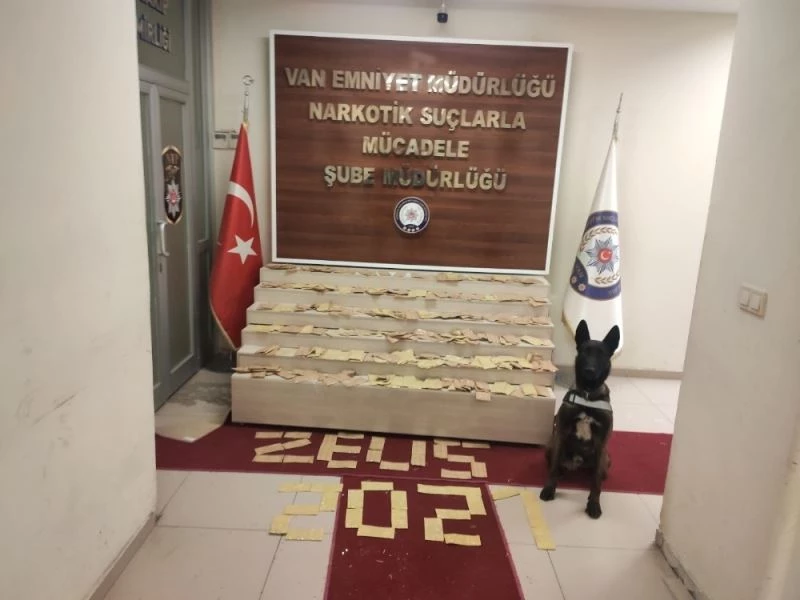 Van Emniyet Müdürlüğünden yapılan açıklamada, Narkotik Suçlarla Mücadele Şube Müdürlüğü ekiplerince bir iş yerine operasyon yapıldığı belirtildi. Narkotik madde arama köpeği Zeus’un da katıldığı aramada, zulalanmış şekilde 776 paket halinde toplam 22 kilo 780 gram eroin ele geçirildi.