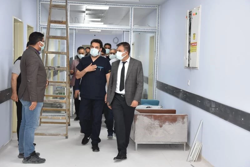 İl Sağlık Müdürü Prof. Dr. Mahmut Sünnetçioğlu, hastaneyi ziyaret ederek, Başhekim Doç. Dr. Sebahattin Çelik’ten yürütülen çalışmalar hakkında bilgi aldı. Ziyaretin ardından açıklamalarda bulunan Başhekim Doç. Dr. Sebahattin Çelik, daha iyi hizmet verebilmek için birçok yeniliği gerçekleştirdiklerini belirterek, “Yürüttüğümüz hizmetlerin başında 3. basamak 29 yataklı erişkin yoğunbakım gelmektedir. Bu nedenle 3. basamak yoğun bakım ünitelerinin açılması için mülkiye amirlerimizin ve İl Sağlık Müdürümüz Prof. Dr. Mahmut Sünnetçioğlu ve beraberindeki heyet hastanemizde incelemelerde bulunmuş ve çalışmaların bir an önce başlatılması talimatını vermiştir. Bizde 3. basamak 29 yataklı yoğun bakım ünitesinin açılmasına start vererek gerekli fiziki çalışmalar başlatılmış olup, inşaat çalışmalarını bitirerek gerekli tescil başvurularını yaptık” dedi.