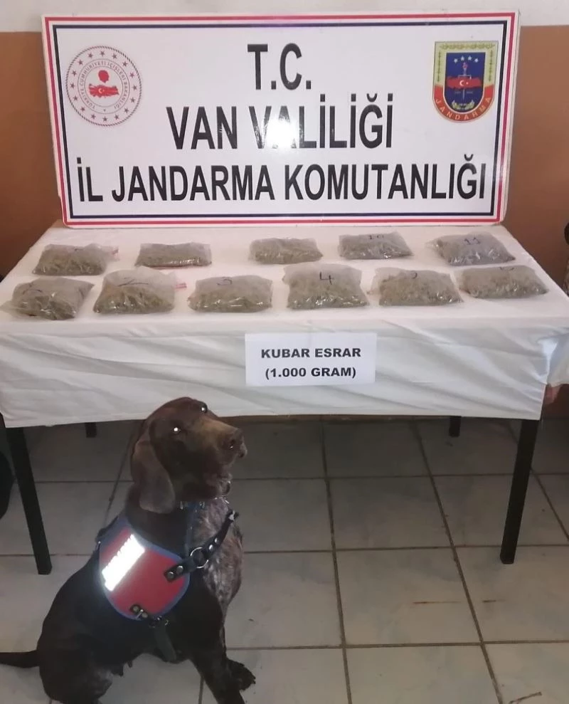 Edinilen bilgilere göre İl Jandarma Komutanlığı ekipleri tarafından Erciş ilçesine bağlı Yukarı Akçagedik Yol Kontrol Noktasında bir yolcu otobüsünde arama yaptı. ’Resif’ isimli uyuşturucu madde köpeğinin bir sırt çantasına tepki vermesi üzerine yapılan aramada, çanta içerisinde bulunan montun iç astarına gizlenmiş vaziyette bin gram esrar maddesi ele geçirildi.