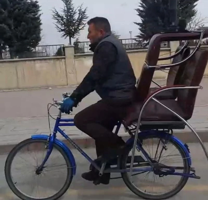 Tuşba’nın Akköprü Mahallesi’ndeki mezarlık yolundan İpek Yolu Caddesi istikametine doğru seyir halindeki bisikletlinin yaptığı tehlikeli yolculuk, diğer sürücüler tarafından cep telefonu kamerasıyla görüntülendi. Bisikletin arkasına 3 adet ofis sandalyesi yükleyen şahıs hem kendisini hem de trafiği tehlikeye soktu. Bisikletlinin tehlikeli yolculuğunu telefona kaydedenler ise “Oturma grubunu bisikletin üzerine atmış ve birkaç kez de trafiği tehlikeye attı” dedi.