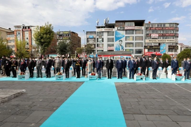 Van Valiliği bahçesinde düzenlenen tören, Vali Mehmet Emin Bilmez ve Asayiş Kolordu Komutanı Tümgeneral Hüseyin Kurtoğlu’nun tebrigatları kabulüyle başladı. Saygı duruşu ve İstiklal Marşı’nın okunmasıyla devam eden kutlamalarda, Vali Mehmet Emin Bilmez bir konuşma yaptı. Cumhuriyetin 97. yıldönümünü kutlamanın heyecan ve sevincini yaşadığımızı belirten Vali Bilmez, “Bu vesileyle aziz vatanımızın müdafaasında canını feda eden kahraman şehitlerimize Yüce Allah’tan rahmet diliyorum. Başta Cumhuriyetimizin kurucusu Gazi Mustafa Kemal Atatürk olmak üzere, tüm gazilerimizi de minnet ve şükranla yad ediyorum” dedi.
