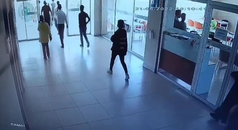 İlçe merkezinde bulunan halk kütüphanesinde ders çalışan öğrencilerin deprem anında yaşadığı panik ve kendilerini binanın dışına atması güvenlik kamerasına yansıdı.