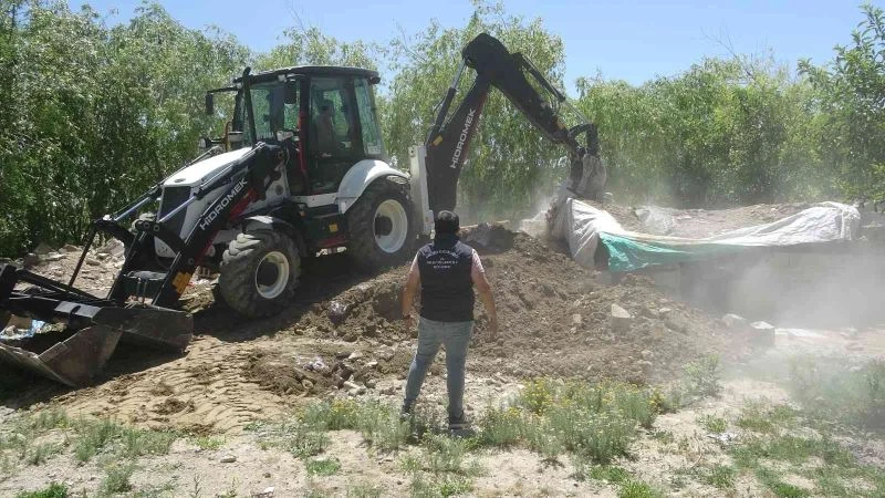 Göçmen kaçakçılığıyla mücadele ekiplerinin gözetiminde Van Büyükşehir Belediyesi ile İpekyolu Belediyesinin yardımıyla tespit edilen şok evler iş makineleriyle yıktırıldı.