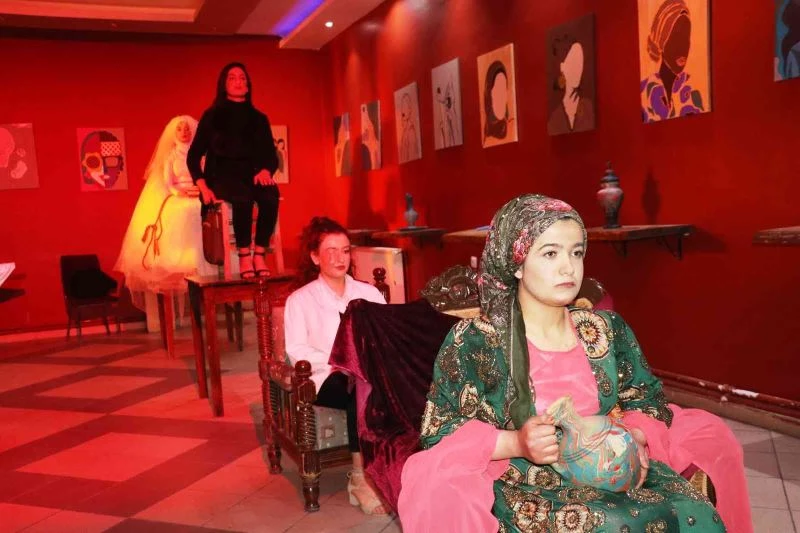 Sergide rol alan kız öğrenciler ise kadına şiddet ve çocuk gelinlerin artık son bulmasını istedi.