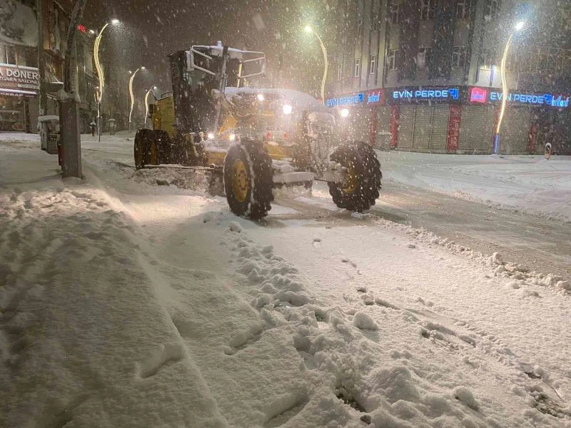 Van’da dünden bu yana aralıklarla etkili olan kar yağışı nedeniyle Van Büyükşehir Belediyesi ekipleri, gece boyu çalışmalarını sürdürdü.