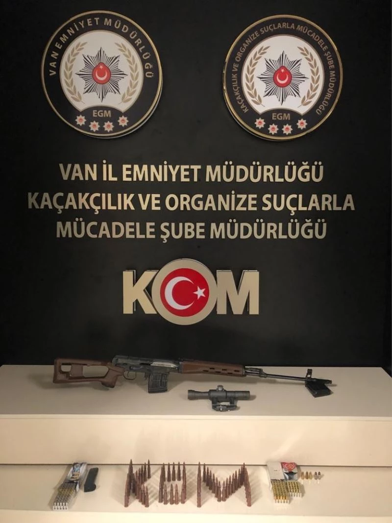 Van Emniyet Müdürlüğünden yapılan açıklamada, il genelinde haksız kazanç sağlayan şahıs/şahısların deşifresine yönelik Kaçakçılık ve Organize Suçlarla Mücadele Şube Müdürlüğü ve Gürpınar İlçe Emniyet Amirliği görevlilerince bir ikamette aramada yapıldığı belirtildi. Açıklamada, “Yapılan aramada; 1 adet keskin nişancı tüfeği, 2 adet keskin nişancı tüfek şarjörü, 1 adet keskin nişancı tüfeği dürbünü, 83 adet 7.62x54 mm fişek, 1 adet tabanca şarjörü, 82 adet 9 mm fişek, 23 adet parça tesirli 9 mm fişek, 25 adet 7.65 mm fişek ele geçirilmiştir. Ele geçirilen suç unsurları ile ilgili 2 şüpheli şahıs yakalanarak gözaltına alınmıştır. 6136 Sayılı Kanuna Muhalefet Suçundan (13. Madde) işlem yapılan şüpheli şahıslar, müdürlüğümüzdeki işlemlerinin ardından adli makamlara sevk edilecektir” denildi.