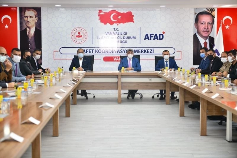 Toplantıya AK Parti Van Milletvekili Abdulahat Arvas, vali yardımcıları, kaymakamlar, belediye başkanları, ilgili kamu kurum müdürleri ile oda başkanları katıldı.