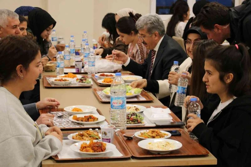 Van YYÜ’nde düzenlenen iftar programına Van Valisi ve Büyükşehir Belediye Başkan Vekili Mehmet Emin Bilmez ve eşi Meral Bilmez, İl Jandarma Komutanı Tuğgeneral Hüseyin Bekmez, İl Müftüsü Ömer Keskin, Gençlik ve Spor İl Müdürü Nevzat İnanç, Yurt Müdürleri ve gençler katıldı.