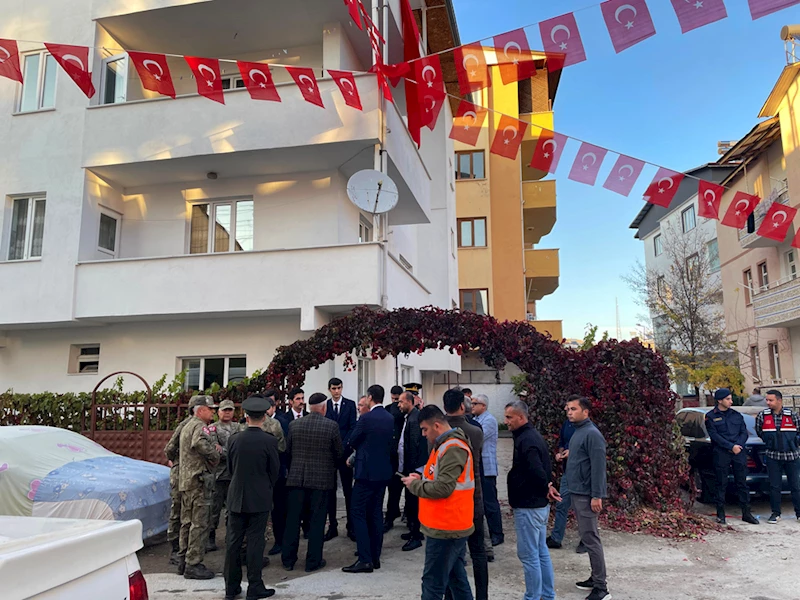 Şehidin baba evine ve sokağa Türk bayrakları asıldı.