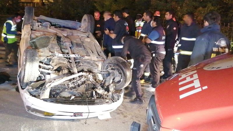 Edinilen bilgiye göre kaza, saat 00;45 sularında İpekyolu Caddesi Havaalanı Kavşağı civarında meydana geldi. Sürücüsünün ismi öğrenilemeyen otomobil Edremit istikametinden şehir merkezine seyir halinde iken bilinmeyen bir nedenden dolayı sürücüsünün direksiyon hakimiyetini kaybetmesi sonu yan refüje çarparak takla attı. Kazayı gören vatandaşlar, polis, sağlık ve itfaiye ekiplerine haber verdiler. Kısa sürede bölgeye giden polis olay yerine giden polis ekipleri, ikinci kazaya sebebiyet vermemek için geniş güvenlik önlemleri alırken, Van Büyükşehir Belediyesi İtfaiye Daire Başkanlığı’na bağlı Tuşba Grup Amirliği ekipleri ile Van Afet ve Acil Durum Müdürlüğü (AFAD) ekipleri, ters dönenen otomobilde sıkışan 3 yaralıyı çıkarıp 112 Acil sağlık ekiplerine teslim edildi. Yaralılar sağlık Bilimleri Üniversitesi (SBÜ) Van Etiğim ve Araştırma Hastanesi’ne Kaldırılarak tedavi altına alınırken kaza yapan otomobil, çekici ile olay yerinden kaldırıldı. Polis, kazayla ilgili tahkikat başlattı.