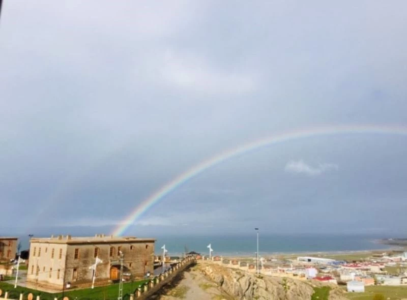 Van’ın Edremit ilçesinde yağmurun ardından gökyüzünde oluşan gökkuşağı manzarası görenleri hayran bıraktı.