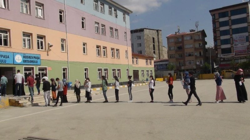Korona virüs nedeniyle sokağa çıkma kısıtlamasının uygulandığı kentte, sabahın erken saatlerinde velileriyle sınav olacakları okula gelen öğrenciler, saat 09.00 itibarıyla okula alınmaya başlandı. Maske takan öğrenciler güvenlik görevlilerin ilk kontrolüyle okula alınırken, tedbirler nedeniyle veliler okul bahçesine alınmadı.