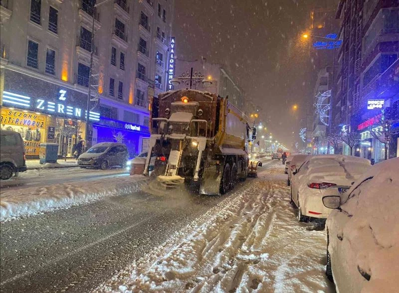 Gece boyu küreme, tuzlama ve kar toplama çalışmaları yürüten ekipler, bir yandan da ana caddelerin kaldırımlarını temizledi.