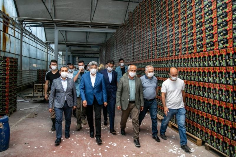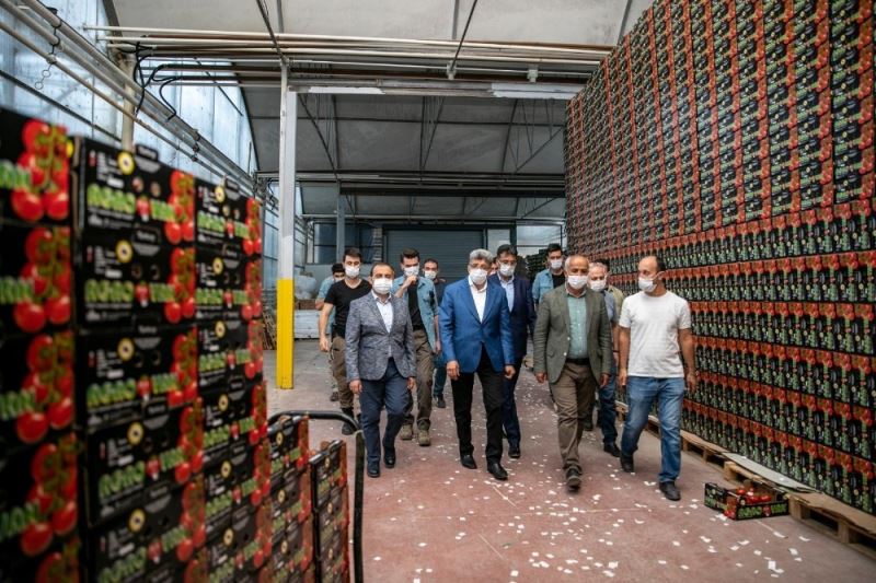 Seralarda üretim yapan firmanın ortaklarından Yusuf Taşkın, domateslerin özellikleri ve önümüzdeki dönemdeki hedeflerini Vali Mehmet Emin Bilmez’e anlattıktan sonra domates yüklü tırlar Antalya’ya doğru yola çıktı.