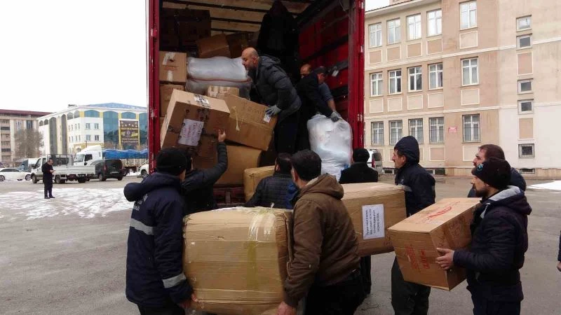 VAN – Kahramanmaraş’ta meydana gelen 7.7 ve 7.6 büyüklüğündeki depremlerden etkilenen 10 ildeki depremzedeler için Van’da toplanan yardım malzemeleri tırlarla gönderildi.
