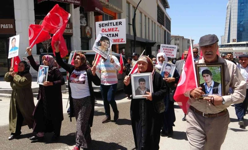 Evlatları değişik tarihlerde PKK terör örgütü tarafından dağa kaçırılan ve sayıları 32 olan aileler, kentin en işlek noktası olan Cumhuriyet Caddesi’nde bir araya geldi. Ellerindeki dövizlerle yürüyüş yapan aileler, bir yandan da HDP ve PKK aleyhine slogan attı. PKK tarafından 13 yaşında dağa kaçırılan kızı Şerima için eylemde olan anne Nazlı Sancar, her hafta bir umutla buraya geldiklerini ifade ederek, “13 yaşında benim kızımı elini kolunu bağlayarak dağa götürdüler. Ben her gün can çekişiyorum. Belki evlatlarımız bizi görüp gelir diye bir umut içinde geliyoruz. İki ay önce kızımın ölümünü sitelere attılar. Ama ben bu katillere, bu zalimlere asla inanmıyorum. Ben devletime inanıyor, devletime güveniyorum. Benim Şerima’mın ya ölüsünü ya dirisini PKK’dan, HDP’den alacağım. Biz ‘Ya zafer ya ölüm’ demişiz. Sonsuz kadar da ya zafer, ya ölüm olacak” dedi.