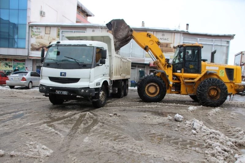 Muş’un Varto Belediyesi, ilçede etkili olan kar yağışının ardından temizleme çalışması başlattı.