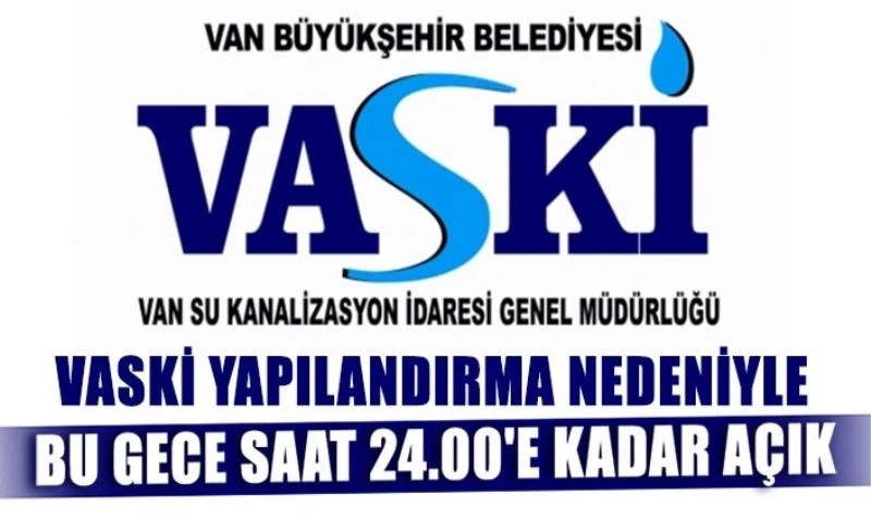 Van Su ve Kanalizasyon İdaresi (VASKİ) Genel Müdürlüğü’ne yapılandırma borcunu ödemek isteyen vatandaşlar saat 24.00’e kadar sokağa çıkma kısıtlamasından muaf tutulacak.