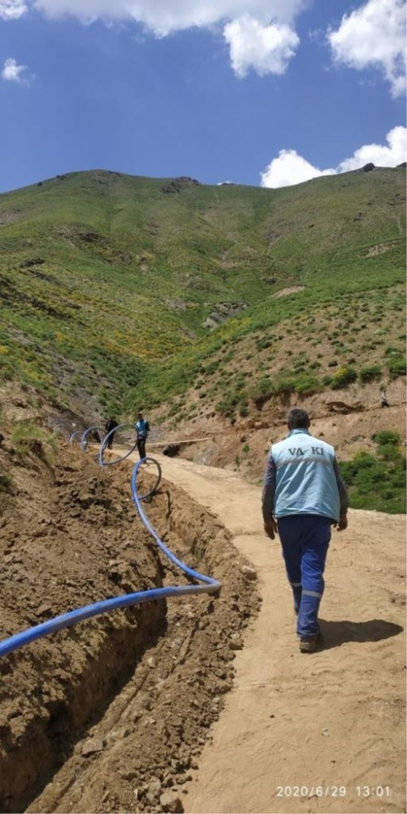 Van Su ve Kanalizasyon İdaresi (VASKİ) Genel Müdürlüğü, yıllardır içme suyu sıkıntısı yaşayan Bahçesaray ilçesi Ulubeyli Mahallesi’nde başlattığı çalışmalara vatandaşlar da kazma kürekle destek veriyor.