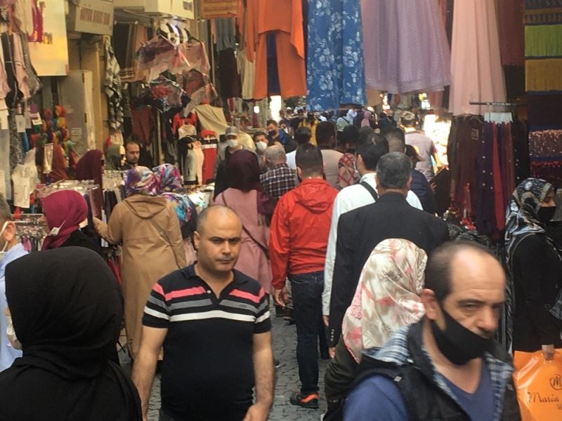 Korona virüsle mücadelede normalleşme dönemiyle birlikte vatandaşlar Eminönü’ndeki çarşılara akın etti. Çeyiz alışverişine yoğun ilginin olduğu çarşıda sosyal mesafe kuralı önemsenmedi.