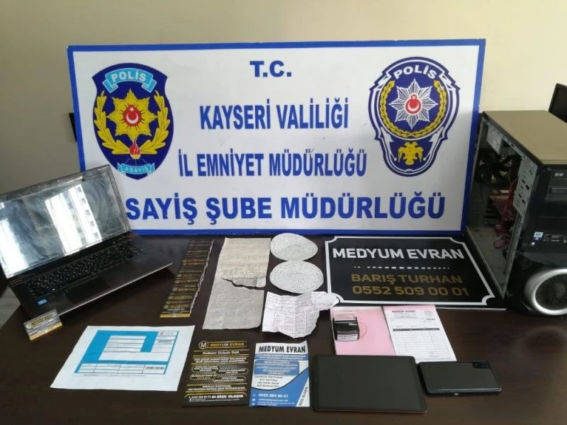 Edinilen bilgiye göre Almanya’da yaşayan F.D., internet üzerinden irtibata geçtiği kendisini medyum olarak tanıtan ve manevi rahatsızlıkları tedavi ettiğini iddia eden B.T.’ye kendisinde büyü olduğunu belirterek büyü bozma karşılığı 35 bin euro para verdi. F.D., rahatsızlıklarının geçmemesi üzerine dolandırıldığını iddia ederek şikâyetçi oldu. Kayseri İl Emniyet Müdürlüğü Asayiş Şube Müdürlüğüne bağlı Yankesicilik ve Dolandırıcılık Büro Amirliğince yapılan çalışmalarda B.T.’nin Kocasinan ilçesinde ofis açtığını tespit etti. B.T. ofisine düzenlenen operasyonla alınırken ikamet ve ofisinde yapılan aramalarda muska tabir edilen el yazması kağıtlar, makbuzlar, kaşe ve kartvizitlere ele geçirildi. Gözaltındaki B.T., emniyetteki işlemlerin tamamlanmasının ardından adliyeye sevk edildi. B.T., çıkarıldığı mahkemece tutuklanarak cezaevine gönderildi.