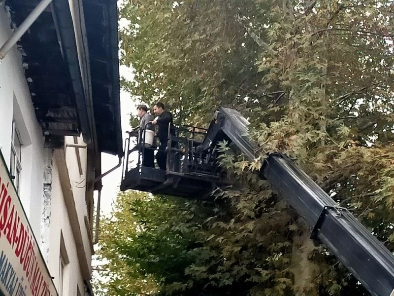Gölbaşı ilçe merkezinde vatandaşlar evlerinin çatısını kış öncesi temizliyor. Kış aylarında yağmur ve kar yağışında tıkanma ve çökme olmaması için oluklar iş makinelerinin yardımı ile temizleniyor.