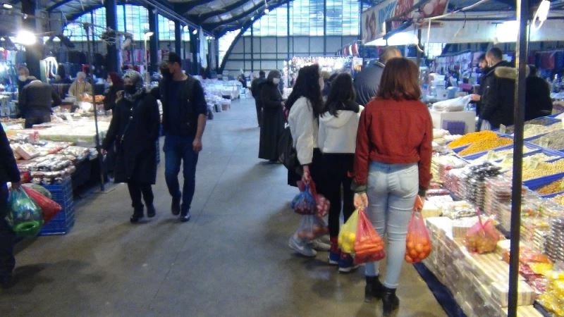 Bursa’nın İnegöl ilçesinde 4 günlük sokağa çıkma kısıtlaması nedeniyle vatandaşlar semt pazarlarında alışverişlerini yapmak için pazarlara akın ettiler.