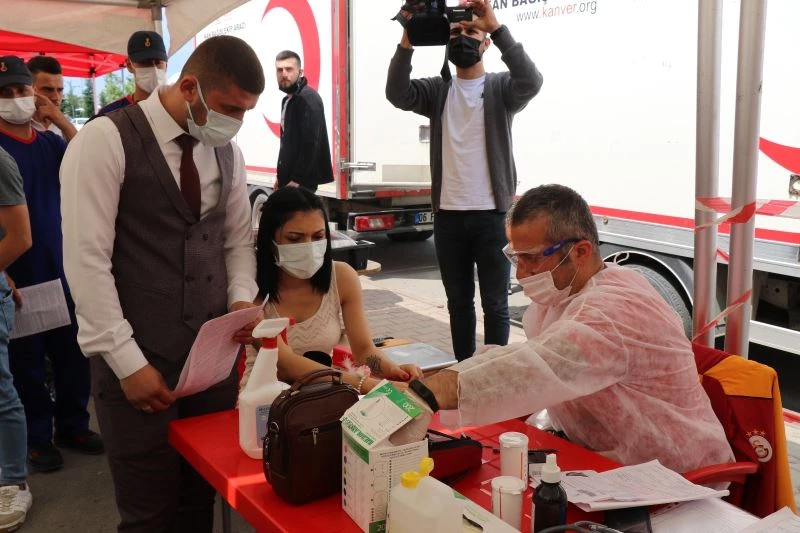 Vatandaşlar jandarma-Kızılay işbirliğinde düzenlenen kan bağış çadırına yoğun ilgi gösterdi.