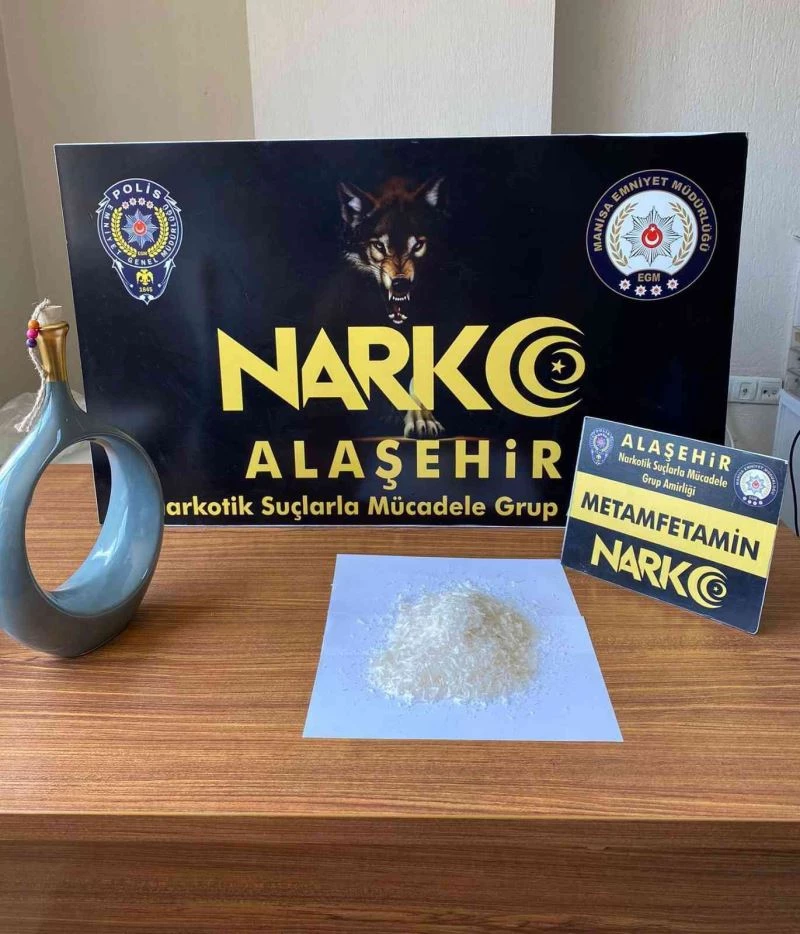Alaşehir İlçe Emniyet Müdürlüğü Narkotik Suçlarla Mücadele Grup Amirliği ekipleri tarafından uyuşturucu madde satan, kullanan ve nakleden şahıslara yönelik yapılan çalışmalar neticesinde; şüphe üzerine durdurulan G.Ö (18), M.E. (17) ve M.C.K. (22) isimli şahısların üzerinden, gri renkli vazo içine saklanmış vaziyette darasız 200.56 gram metamfetamin maddesi ele geçirildi. Olayla ilgili gözaltına alınan şüpheliler emniyetteki sorgularının ardından adliyeye sevk edildi. Şüpheliler G. Ö. ve M.E. "Uyuşturucu Madde Ticareti Yapma" suçundan tutuklanırken, M. C. K. isimli şahıs savcılık tarafından serbest bırakıldı.