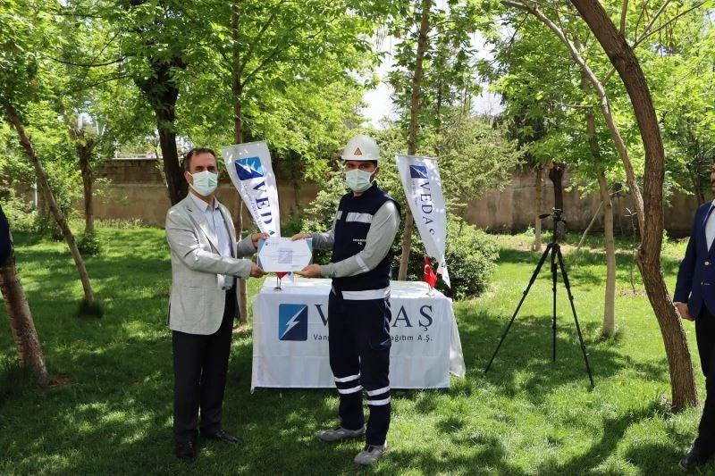 Van, Bitlis, Muş ve Hakkâri illerinde zorlu arazi ve çetin iklim şartlarında görev yapan elektrik çalışanları, görevleri sırasında iş sağlığı ve güvenliği kurallarına gösterdikleri özen ve dikkat nedeniyle ödüllendirildi. 4-10 Mayıs İş Sağlığı ve Güvenliği Haftası kapsamında düzenlenen etkinlikte konuşan VEDAŞ Şirket Müdürü Emrullah Okuducu, “Zor bir coğrafyada oldukça kritik bir görevi yerine getiriyoruz. Bu görevi yerine getirirken de çalışanlarımızın can sağlığını korumak birinci önceliğimizdir. İş güvenliğine gösterilen önemin insan hayatına verilen önem olduğunun bilinciyle çalışanlarımızın hayatına maksimum önemi veriyoruz. Bu kapsamda da personelimizde İSG bilincini oluşturmak için her türlü önlemi alıyoruz. Korunmak, riskli görünen her tehlikeye karşı tedbir almakla başlamalı. Bu konuda da sürekli çalışan ve güvenliğini içselleştirip kalıcı hale getiren çalışanlarımızı plaket, sertifika ve çeşitli hediyelerle ödüllendirdik” dedi.