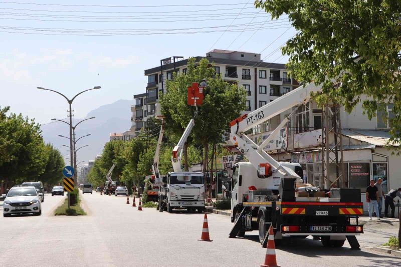 Enerji arzında aksama yaşanmaması için önleyici bakım çalışmalarını sürdüren VEDAŞ ekipleri, elektrik şebekesine temas eden ağaç dallarını temizledi.