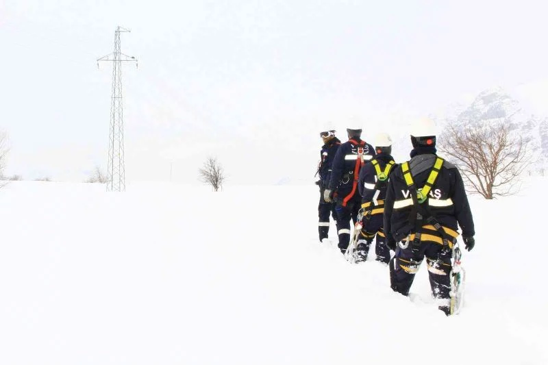 Kar kalınlığının 2 metreyi bulduğu bölgede giydikleri hediklerle kara bata çıka ilerleyen VEDAŞ ekipleri, zor şartlar altında çalışmalarını yürüterek arızayı tespit etti.