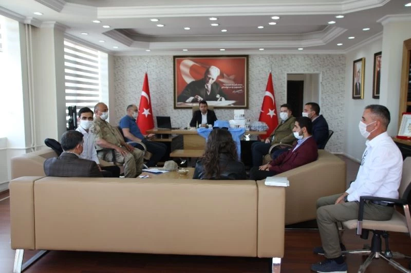 Varto Kaymakamı ve Belediye Başkanı Vekili Ertuğrul Avcı başkanlığındaki toplantıda, Vefa Sosyal Destek Grubu’nun çalışma şartları ve atılması gereken adımların atılması ile Ramazan Bayramı öncesi ve sonrasında gereken önlemler değerlendirildi. Toplantıda konuşan Varto Kaymakamı Ertuğrul Avcı, korona virüs salgını nedeniyle risk grubunda bulunan 65 yaş ve üstü vatandaşlara yönelik bir dizi tedbirler alındığını söyledi. Bu gruptaki kişilere sokağa çıkma kısıtlaması uygulanmaya başlandığını hatırlatan Kaymakam Avcı, “Ülkemizde korona virüs salgını nedeniyle Cumhurbaşkanlığımızın başkanlığında alınan tedbirler sonucunda vaka sayısı azalmaya devam etmektedir. Salgında en temel risk unsuru toplumsal alanlarda virüsün bulaşıcılığının yüksek/hızlı olması ve 65 yaş ve üzeri, bağışıklık sistemi düşük ve kronik akciğer hastalığı, astım, KOAH, kalp/damar hastalığı, böbrek, hipertansiyon ve karaciğer hastalığı olanlar ile bağışıklık sistemini bozan ilaçları kullanan insanların üzerinde ciddi sağlık sorunları oluşturarak insan hayatını tehdit etmektedir. Bu nedenle 65 yaş ve üzeri ile kronik rahatsızlıkları olan vatandaşlarımızın ikametlerinden dışarı çıkmaları, açık alanlarda, parklarda dolaşmaları ve toplu ulaşım araçları ile seyahat etmeleri sınırlandırılarak sokağa çıkmalarının kısıtlamasına karar verilmesi ile birlikte Ramazan Bayramı’nda yapılacak olan dört günlük sokağa çıkma kısıtlamasıyla ilgili de gerekli önlemlerin alınması açısında bazı kararlar aldık” dedi.